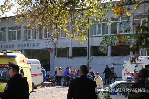 epa07099801 Rescuers work at a vocational school in Kerch in Crimea, 17 October 2018. About 18 people were killed and 40 injured in an suspected explosion and shooting in the school. According to the Russian Investigative Committee, an 18-year-old student has committed suicide after allegedly attacking the school. EPA/KERCH.FM ATTENTION EDITORS: GRAPHIC CONTENT.