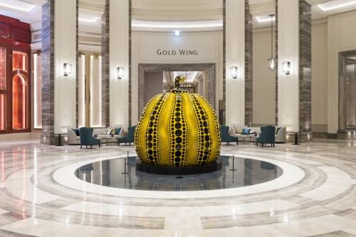 예술전시공간 ‘파라다이스 아트 스페이스’는 파라다이스시티의 아트테인먼트가 집약된 장소다. 상설전시실에는 ‘현대미술의 대가’ 제프 쿤스의 ‘게이징 볼-파르네스 헤라클레스’가 있다. 이 작품에서 가장 눈길이 가는 파란 공은 관람객이 공 표면에 비칠 때 마치 작품의 일부가 된 듯한 느낌을 준다. 제프 쿤스는 2013년 뉴욕 크리스티 경매에서 ‘풍선 개’가 5840만달러에 낙찰돼 생존 작가 중 최고 경매액을 기록한 바 있다.