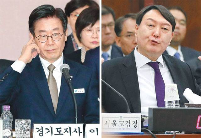 19일 이재명 경기도지사(왼쪽 사진)와 윤석열 서울중앙지검장이 각각 국회 행정안전위원회와 법제사법위원회의 국정감사를 받고 있다.