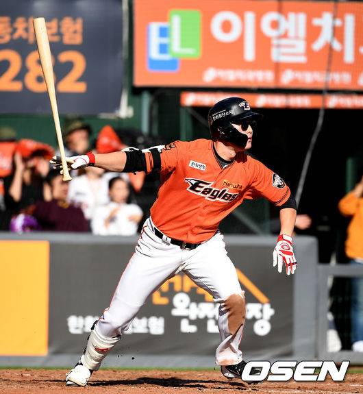 [OSEN=대전, 지형준 기자] 20일 오후 대전 한화생명이글스파크에서 ‘2018 신한은행 MY CAR KBO 포스트시즌 준플레이오프’ 한화와 넥센의 2차전이 열렸다. 3회말 무사에서 한화 이성열이 중전안타를 날리고 있다. /jpnews@osen.co.kr
