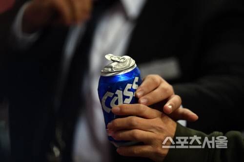 관중석에서 방송중계카메라 쪽으로 날아온 맥주캔[포토]