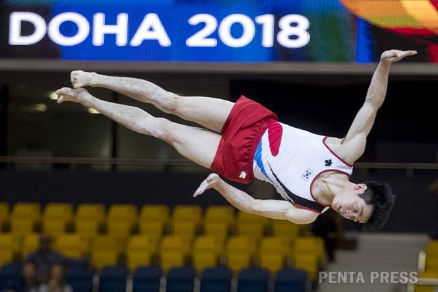[ 도하, 카타르(현지) - 2018/10/26 ] 기계체조 선수권 마루 연기하는 박민수.