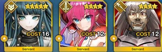 '슈텐도지'의 경우, 아츠 카드를 많이 가지고 있으며 대미지보다는 버프, 디버프 부여 중심의 서포터이며 '스카사하(어쌔신)'은 많은 퀵 카드와 스킬 타깃 집중, 대미지 컷 등을 이용한 탱커 겸 크리딜러이나 '클레오파트라'는 버스터 카드를 많이 가지고 있으며 자체 공격력 버프를 이용해 강력한 공격을 하는 딜러라는 점이 다르다.