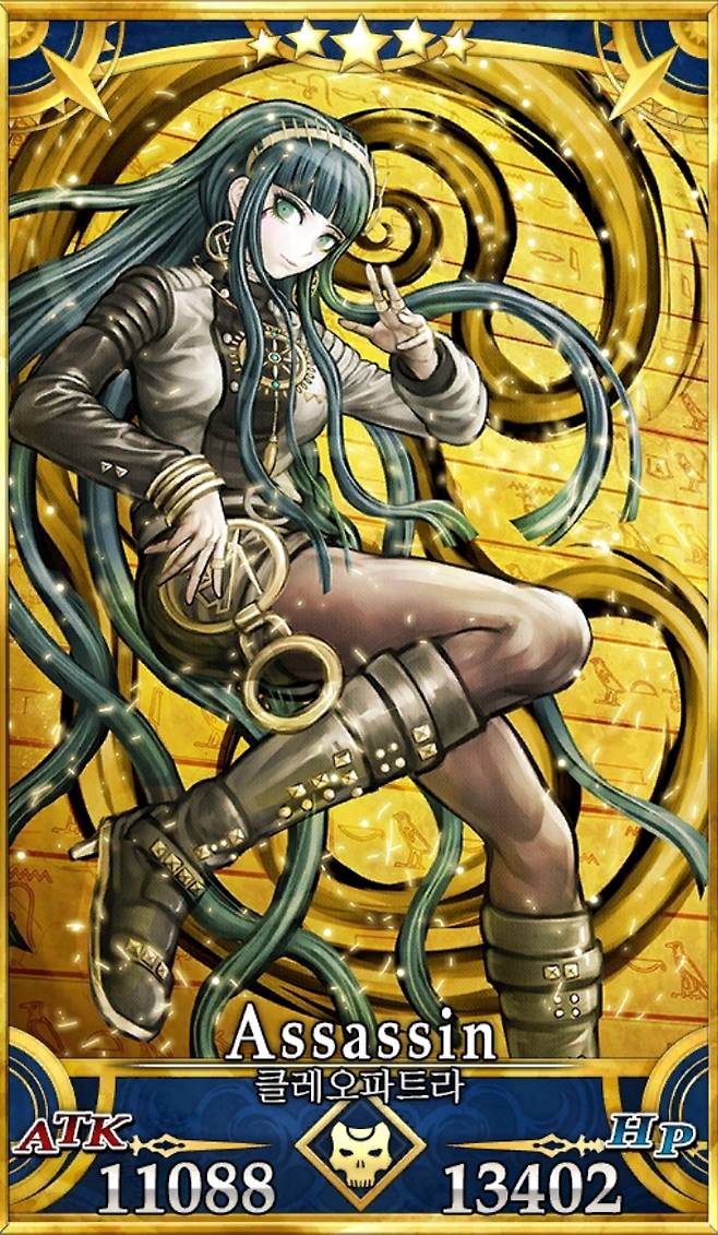 '클레오파트라'는 '페이트/그랜드 오더'에 3번째로 등장한 대군 보구를 가진 어쌔신이다. 앞서 등장한 대군 보구 어쌔신인 '슈텐도지'와 '스카사하(어쌔신)'과는 그 특성에서 차이가 있다.
