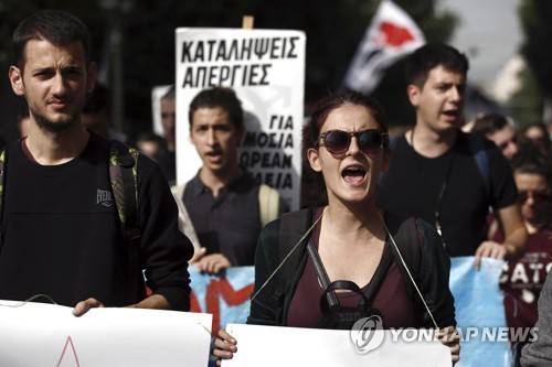 Students take part in a protest in central Athens