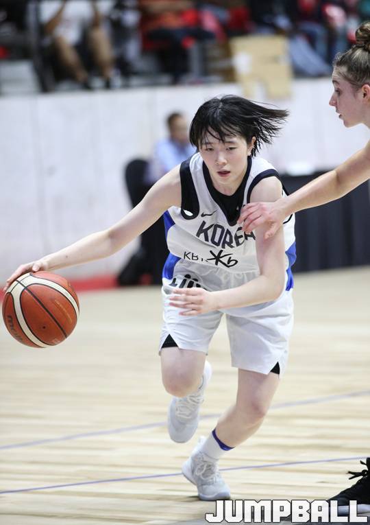 3일 인도 방갈로루 스리 칸티라바 체육관에서 열린 2018 FIBA 아시아 U18여자농구 대회 한국과 호주의 3-4위 결정전, 한국 대표팀의 신이슬이 드리블로 호주 수비를 제치려 하고 있다. 2018-11-03 한필상(murdock@jumpball.co.kr)