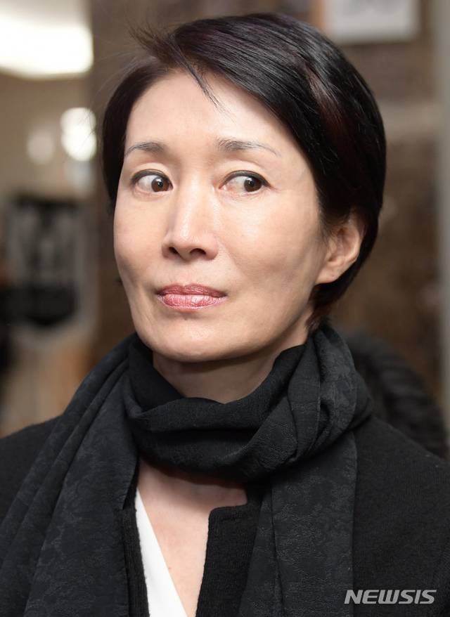 【서울=뉴시스】사진공동취재단 = 배우 나영희가 5일 오후 서울 송파구 풍납동 서울아산병원 장례식장에 마련된 고 신성일 씨의 빈소에서 조문한 후 인터뷰를 하고 있다. 2018.11.05.