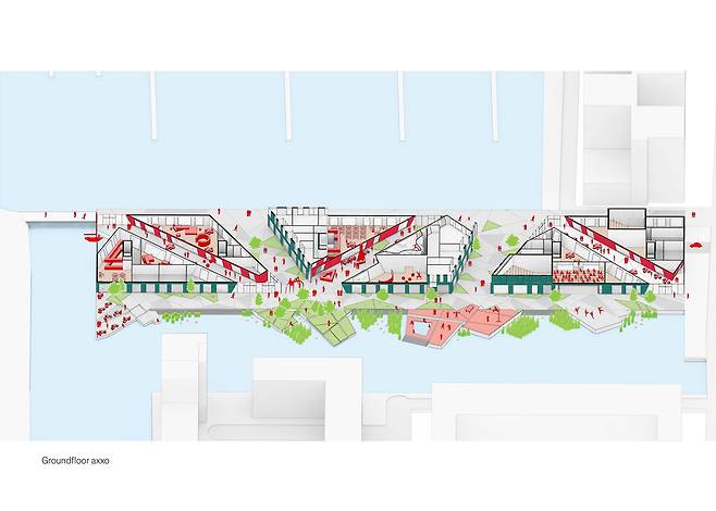 수자원의 풍부한 암스테르담 도시의 특성을 십분 활용하여 건축 풍경을 생태학적 특성과 통합하고, 건축과 녹지, 물을 하나의 시스템으로 엮어내었다.