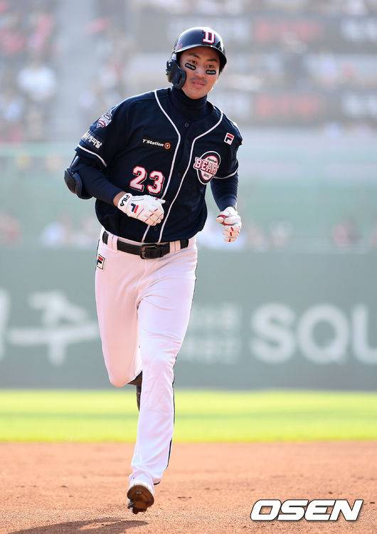 3회초 1사에서 두산 정진호가 좌월 솔로 홈런을 치고 그라운드를 달리고 있다./sunday@osen.co.kr