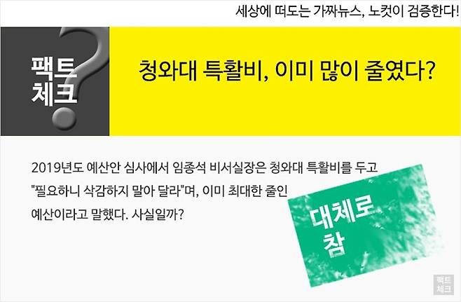 내년 청와대 특활비 예산이 올해 예산에서 '하나도 안 줄인' 것은 맞지만, 크게 보인 것은 올해 예산부터가 눈에 띄게 낮아진데서 오는 착시에서 비롯된 것이다.