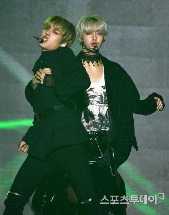 이날 그룹 몬스타엑스 민혁, 형원이 멋진 무대를 선사하고 있다.