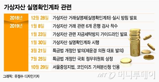특히 특금법 개정안은 가상통화 가이드라인과 마찬가지로 불투명한 거래사이트에 대해 '은행들이 거래를 중단할 수 있다'고 규정돼 있다. 법원이 코인이즈의 가처분을 인용할 이유도 '중단할 수 있다'는 조항이 의무가 아닌 재량이라는 이유였다. 국회 정무위 관계자는 "최근 상황들을 감안해 법안 심사 과정에서 수정해야 할 부분들을 검토하겠다"고 밝혔다.