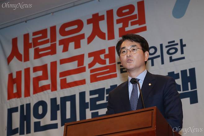 | ▲ 지난 10월 31일 박용진 더불어민주당 의원이 국회 헌정기념관 대강당에서 열린 사립유치원 비리근절을 위한 대안마련 정책 토론회에서 인사말을 하고 있다. |