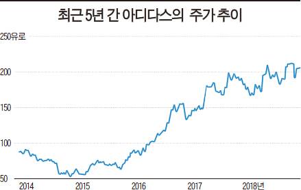 하지만 2016년 1월 아디다스 이사회가 부진을 타개할 인물로 낙점한 캐스퍼 로스테드(Rørsted·55) 최고경영자(CEO)의 활약 이후 상황은 달라졌다. 우선 지난해 조던 브랜드를 제치고 운동화 시장 점유율 2위자리에 올랐다. 독일의 투자은행 베렌베레르그의 애널리스트들은 “아디다스는 스포츠 용품 세계에서 가장 성공적으로 턴라운드(Turnround·조직개혁과 경영혁신을 통한 실적 개선)를 해낸 사례”라고 평가했다.