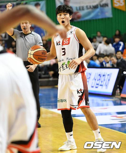 3쿼터 KT 허훈이 파울을 당한 조상열을 보고 놀란 표졍을 짓고 있다. /pjmpp@osen.co.kr