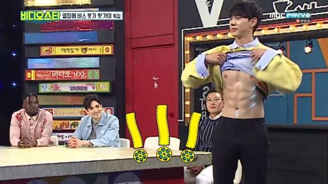 진주형은 "한국 예능프로그램 첫 출연을 기념해 복근을 공개하고 싶다"고 말해 MC들의 기대감을 증폭시켰다.
