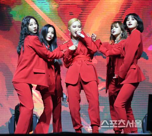강렬한 붉은색 수트를 맞춰입은 데 대해 솔지는 “우리 멤버들이 길이가 된다. 노출 없이 우리 매력을 잘 살릴 수 있는 게 뭐가 있을까 하다가 수트로 콘셉트를 잡았다”고 말했다.