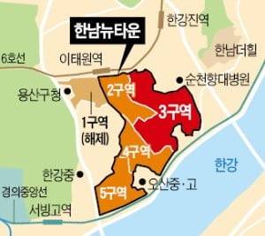 한남3구역은 한남뉴타운에서 가장 사업 진척이 빠른 곳이다. 지난 6월 교육환경영향평가에서 서울교육청 승인을 받았다. 같은 달 서울시의 조례 개정으로 현황도로의 무상양도가 확정되면서 사업성이 한층 높아졌다. 8월엔 환경영향평가를 통과했다.
