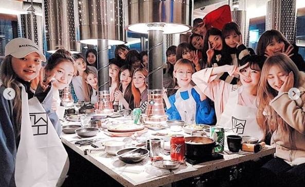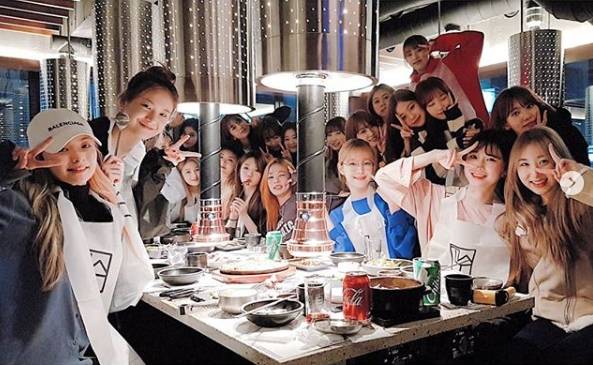 그룹 아이즈원, 프로미스나인의 단체회식 현장이 공개됐다.
