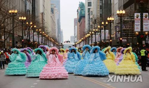 (181123) -- CHICAGO, Nov. 23, 2018 (Xinhua) -- Performers attend the Thanksgiving Day Parade in Chicago, the United States, on Nov. 22, 2018.(Xinhua/Wang Ping) (wyo)