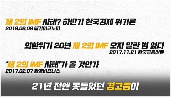 ‘헬조선 연대기’가 여전히 진행 중인 지금, 정치권에서는 ‘제2의 IMF 위기설’이 흘러나옵니다. 21년 전에는 감지하지 못했던 경고음이 이제는 들리는 걸까요. 아니면 그저 국민들에게 남아 있는 21년 전의 트라우마를 자신들의 정치적 목적에 따라 이용하고 싶은 걸까요.