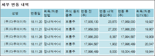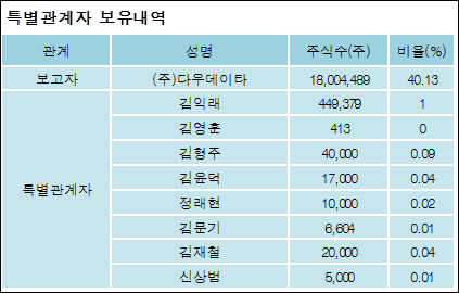 다음은 다우기술의 지분 변동 내역과 보유 내역이다.