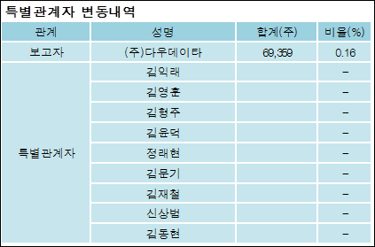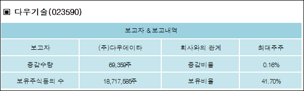 [ET투자뉴스][다우기술 지분 변동] (주)다우데이타 외 8명 0.16%p 증가, 41.7% 보유