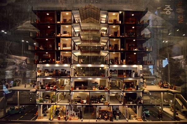 | ▲ 세운상가 모형 지하1층과 지상3층은 상가였고 4층이상 아파트가 있는 주상복합건물이었다 |