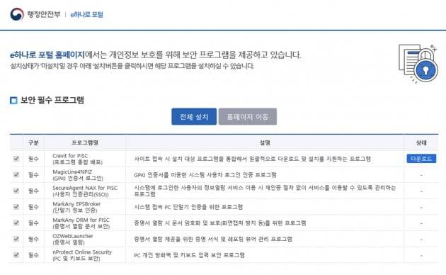 '대한민국 정부 대표 포털'임을 자임하는 '정부 24'에 접속하면 액티브X와 EXE 파일 6가지를 설치하라는 안내가 뜬다. 사진= 뉴스래빗