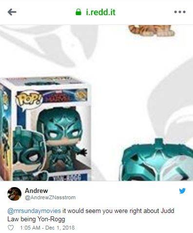 [마이데일리 = 곽명동 기자]마블 히어로 무비 ‘캡틴 마블’에서 주드 로가 맡은 캐릭터는 마-벨이 아니라 빌런 욘-로그가 될 가능성이 높아졌다.