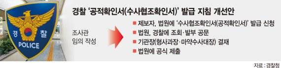 2일 일선 경찰 관계자 등에 따르면 지난 6월 경찰청의 개선 지침 이후 조사관 개인 명의로 작성하던 수사협조확인서(공적확인서) 발부 방식이 기관장의 내부 결재를 통해 법원에 제출하도록 변경됐다.