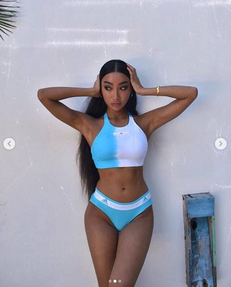 사진 속 문가비는 비키니를 입고 한껏 포즈를 취하고 있다.