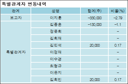 최대주주와 특수관계자의 지분 변동은 주가에 영향을 주는 요인이다. 특히 보유비율을 지속적으로 늘리거나 줄일 경우, 해당종목 투자시 유의할 필요가 있다.