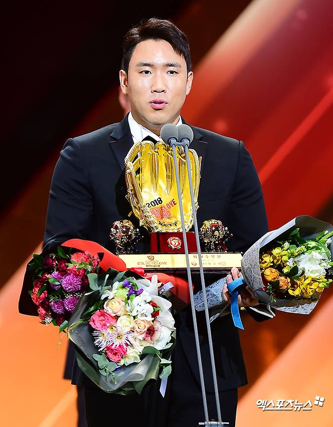 전준우 '결혼기념일날 받은 골든글러브'[포토]