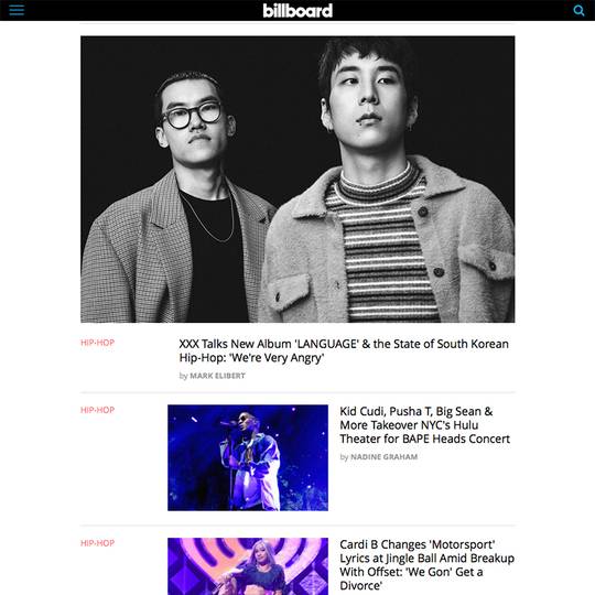 힙합듀오 XXX가 뉴욕타임즈 소개에 이어 빌보드 단독 인터뷰를 진행했다.
