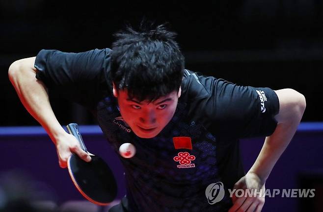 (인천=연합뉴스) 진성철 기자 = 중국 량징쿤이 15일 인천 남동체육관에서 열린 2018 국제탁구연맹(ITTF) 월드투어 그랜드 파이널스 남자단식 8강에서 일본 미즈타니 준을 상대로 서브하고 있다. 2018.12.15