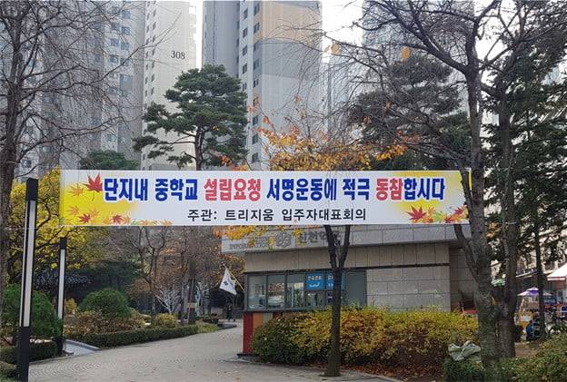 잠실, 반포 등 재건축 사업장이 많은 다른 지역도 학교가 모자라 주민들이 골머리를 앓고 있다. 잠실에선 잠실시영을 재건축해 6864가구가 10년 전 입주한 ‘파크리오’ 주민들이 인근 잠실고를 남녀공학 학교로 변경하고, 중학교 등을 신설해달라는 청원 운동을 벌이고 있다. 3696가구 규모 ‘트리지움(잠실주공3단지 재건축)’은 지난 10월부터 지난달까지 단지내 중학교 설립 요청 서명운동이 일었다가 단지내 부지 이용을 놓고 주민간 이견이 커져 중단됐다.