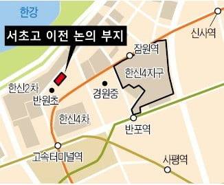 서초구에선 서초3동에 있는 서초고를 잠원동으로 이전하는 안을 놓고 주민간 이견이 계속되고 있다. 서울교육청이 지난 3월 서초·서운·서일중 등에서 서초고 이전에 대한 주민공청회와 설명회를 여러 차례 열었고 관련 행정절차도 일부 거쳤으나 논의가 보류됐다. 서초·방배동에선 남녀공학 학교가 서초고 뿐이라 서초고를 옮기면 일대 여학생들의 통학이 어려워진다는 서초동 주민들의 반대 목소리가 높아서다.