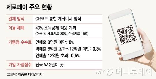 제로페이는 사각형의 2차원 바코드인 QR코드를 활용한 계좌이체 방식의 결제 서비스다. 소비자는 네이버페이와 페이코 등 간편결제 앱이나 은행 결제 앱으로 제로페이 가맹점에 비치된 QR코드를 휴대폰으로 스캔한 후 거래금액을 입력하면 된다. 가맹점주가 가맹점 앱을 통해 이를 확인하면 거래금액이 소비자의 은행 계좌에서 가맹점주 계좌로 곧바로 이체된다.