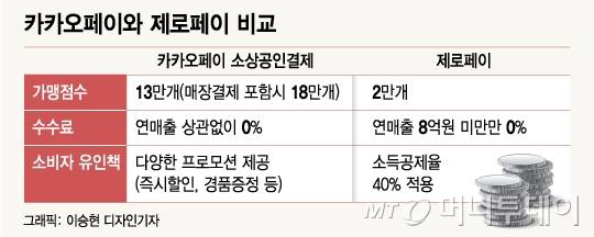 카카오페이는 당초 제로페이 참여사 중 하나였지만 시범사업 불참을 결정했다. 카카오톡 회원을 바탕으로 독자적인 가맹점 확대가 중요한데 제로페이의 사업구조가 이와 상충된다고 판단해서다.