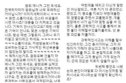 황광희 매니저 유시종 SNS 보니 "딱 봐도 일진 포스, 사과해라" 댓글 달려