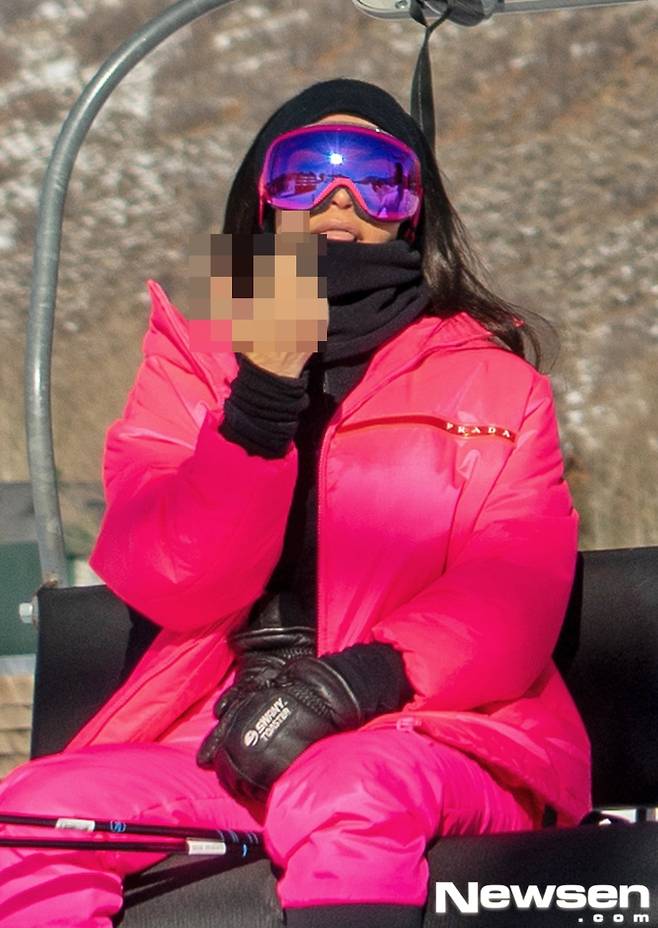 킴 카다시안은 이날 3,000달러(한화 약 335만원)짜리 핑크색 프라다 스키복을, 켄달 제너는 시크한 흰색&검은색 스키복을 입었다. 킴 카다시안은 파파라치를 향해 손가락 욕을 날려 눈길을 끌었다.