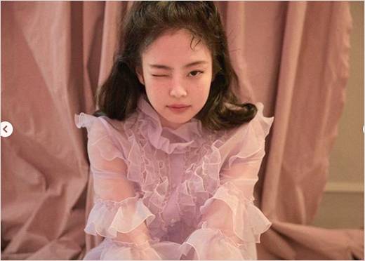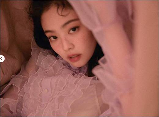 블랙핑크 제니는 30일 인스타그램에 사진을 게재했다. 사진 속 제니는 핑크빛 러플 드레스를 입고 색다른 모습을 선보였다.