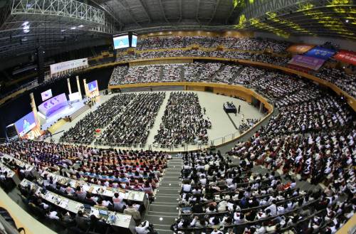 가정연합 '신통일한국시대 개문 범국민 기도회' 열어/ 2만여명 참석 190개국 생중계 / 한 총재 "전쟁·갈등 없는 한국을"