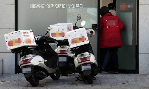| 배달료도 줄인상 1일 서울의 한 배달대행업체 앞에 오토바이들이 세워져 있다. 최저임금 인상 등으로 비용부담이 늘면서 음식점들은 배달 아르바이트생은 줄이고 대행업체 이용을 늘리고 있다. 이들 대행업체도 비용 상승을 이유로 배달료를 줄줄이 인상하고 있다. 이재문 기자 |