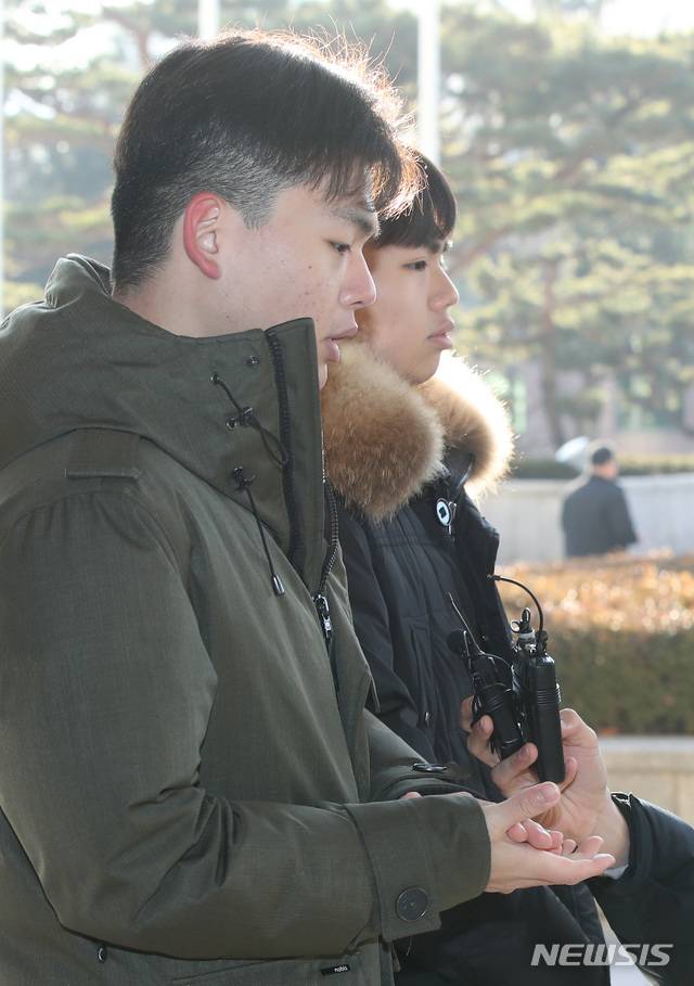 【서울=뉴시스】이윤청 수습기자 = 더 이스트라이트 전 멤버 이석철, 이승현 형제가 2일 오전 서울 서초구 서울중앙지방검찰청으로 고소인 조사를 받기 위해 출석해 취재진의 질문에 답하고 있다. 2019.01.02.
