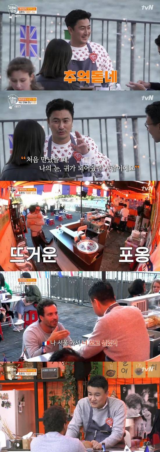 안정환 외에도 박중훈도 오랜 친구와 8년 만에 재회해 눈길을 끌었다. 박중훈은 누군가를 만나 깊은 포옹을 나눴다. 파리 영업 마지막 날 박중훈의 친구가 방문한 것. 두 사람은 8년 만에 만난 오래된 친구였다.