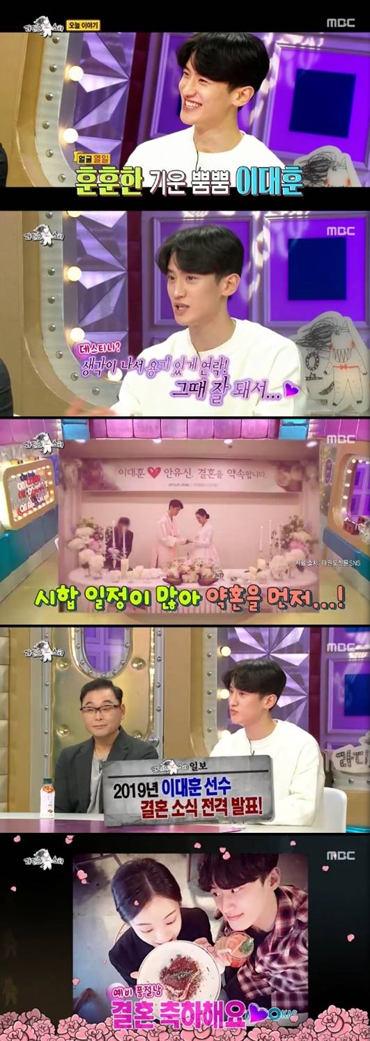 이대훈은 결혼을 앞뒀다. "시합 일정이 많아 약혼을 먼저 했다. 올해 결혼을 준비 중이다. 5월을 생각하고 있다. 여자친구와 소개팅하고 4년 후에 만났다. 여자친구를 소개 받았는데 그때는 나도 여자친구도 연애를 잘 몰라서 연락이 끊겼다. 이후 갑자기 생각 나서 다시 연락했는데 잘 됐다. 다시 만난지 2년 넘었다. 여자친구는 승무원이다"라고 털어놓았다.