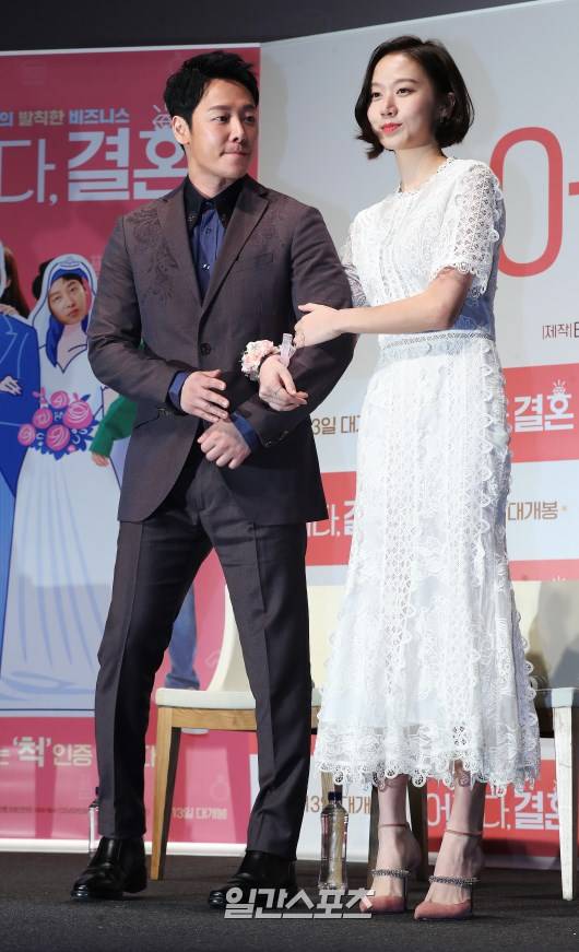 9일 오전 서울 강남구 CGV 압구정점에서 영화 '어쩌다, 결혼' 제작보고회가 진행됐다. '어쩌다, 결혼'은 자유를 얻기 위해 결혼을 계획하는 항공사 오너 2세 성석(김동욱)과 내 인생을 찾기 위해 결혼을 선택한 전직 육상요정 해주(고성희)가 서로의 목적 달성을 위해 3년간의 결혼을 계약하며 생긴 이야기를 그린 영화다. 두 주연 배우 김동욱과 고성희를 비롯해 황보라, 김의성, 임예진, 염정아, 조우진, 손지현, 유승목, 이준혁 등이 출연한다. 신예 박호찬, 박수진 감독이 메가폰을 잡았다.