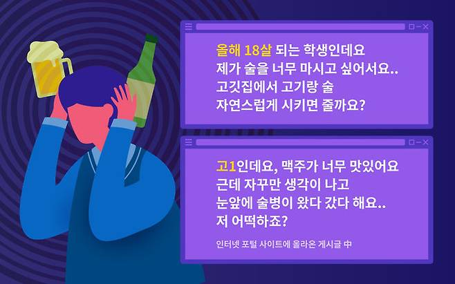 '술 마시는 청소년', 어떤 생각이 먼저 떠오르시나요? 편의점에서 술을 사려다가 주민등록증을 제시 못해 쩔쩔매는 모습, 술을 처음 입에 대고 맛없다며 얼굴 찡그리는 모습을 떠올리는 분들이 많을 겁니다. 하지만 이런 모습은 드라마나 영화에서나 볼 수 있을 뿐 현실에서는 다릅니다.